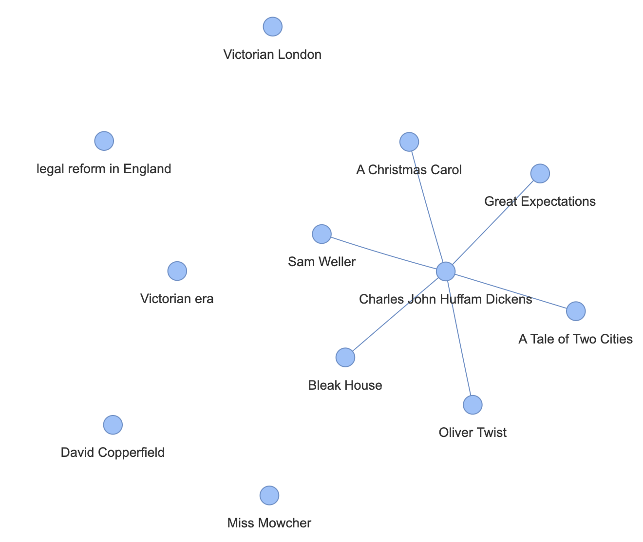template ="""{ "output": { "entities": ["string"], "relationships": [["string", "string", "string"]] }}"""document ="""Charles John Huffam Dickens (7 February 1812 – 9 June 1870) was an English novelist, journalist, short story writer and social critic. He created some of literature's best-known fictional characters, and is regarded by many as the greatest novelist of the Victorian era. His works enjoyed unprecedented popularity during his lifetime and, by the 20th century, critics and scholars had recognised him as a literary genius. His novels and short stories are widely read today.Born in Portsmouth, Dickens left school at age 12 to work in a boot-blacking factory when his father John was incarcerated in a debtors' prison. After three years, he returned to school before beginning his literary career as a journalist. Dickens edited a weekly journal for 20 years; wrote 15 novels, five novellas, hundreds of short stories and nonfiction articles; lectured and performed readings extensively; was a tireless letter writer; and campaigned vigorously for children's rights, education and other social reforms.Dickens's literary success began with the 1836 serial publication of The Pickwick Papers, a publishing phenomenon—thanks largely to the introduction of the character Sam Weller in the fourth episode—that sparked Pickwick merchandise and spin-offs. Within a few years, Dickens had become an international literary celebrity, famous for his humour, satire and keen observation of character and society. His novels, most of them published in monthly or weekly instalments, pioneered the serial publication of narrative fiction, which became the dominant Victorian mode for novel publication. Cliffhanger endings in his serial publications kept readers in suspense. The instalment format allowed Dickens to evaluate his audience's reaction, and he often modified his plot and character development based on such feedback. For example, when his wife's chiropodist expressed distress at the way Miss Mowcher in David Copperfield seemed to reflect her own disabilities, Dickens improved the character with positive features. His plots were carefully constructed and he often wove elements from topical events into his narratives. Masses of the illiterate poor would individually pay a halfpenny to have each new monthly episode read to them, opening up and inspiring a new class of readers.His 1843 novella A Christmas Carol remains especially popular and continues to inspire adaptations in every creative medium. Oliver Twist and Great Expectations are also frequently adapted and, like many of his novels, evoke images of early Victorian London. His 1853 novel Bleak House, a satire on the judicial system, helped support a reformist movement that culminated in the 1870s legal reform in England. A Tale of Two Cities (1859; set in London and Paris) is regarded as his best-known work of historical fiction. The most famous celebrity of his era, he undertook, in response to public demand, a series of public reading tours in the later part of his career. The term Dickensian is used to describe something that is reminiscent of Dickens and his writings, such as poor social or working conditions, or comically repulsive characters."""examples = [ {"input": "Stephen is the manager of Anna. Stephen works in Belgium.","output": """{ "entities": ["Stephen", "Anna", "Belgium"], "relationships": [["Stephen", "manager_of", "Anna"], ["Stephen", "works_in", "Belgium"]] }""" }, {"input": "Google was founded by Larry Page and Sergey Brin while they were Ph.D. students at Stanford University.","output": """{ "entities": ["Google", "Larry Page", "Sergey Brin", "Stanford University"], "relationships": [["Larry Page", "co_founder_of", "Google"], ["Sergey Brin", "co_founder_of", "Google"], ["Larry Page", "student_at", "Stanford University"], ["Sergey Brin", "student_at", "Stanford University"]] }""" }]messages = [{"role": "user", "content": document}]text = processor.tokenizer.apply_chat_template( messages, template=template, examples=examples, # examples provided here tokenize=False, add_generation_prompt=True,)inputs = processor( text=[text], images=None, padding=True, return_tensors="pt",)inputs = inputs.to(model.device)start_time = time.time()# https://huggingface.co/docs/transformers/main_classes/text_generationgenerated_ids = model.generate(**inputs,**{"do_sample": False, # False means greedy decoding"num_beams": 1, "max_new_tokens": 2*4096, "temperature": None, "top_p": None, "top_k": None,# "max_time": 120,})end_time = time.time()generated_ids_trimmed = [ out_ids[len(in_ids) :] for in_ids, out_ids inzip(inputs.input_ids, generated_ids)]result = processor.batch_decode( generated_ids_trimmed, skip_special_tokens=True, clean_up_tokenization_spaces=False)try: g = json.loads(result[0])print(json.dumps(g, indent=4))print(f"Found {len(g['entities']) if'entities'in g else0} entities and {len(g['relationships']) if'relationships'in g else0} relationships in {(end_time - start_time):.1f} seconds.")except json.JSONDecodeError as e:print("Bad format JSON output:", result[0])